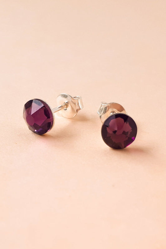 Round Sterling Silver Crystal Stud Earrings
