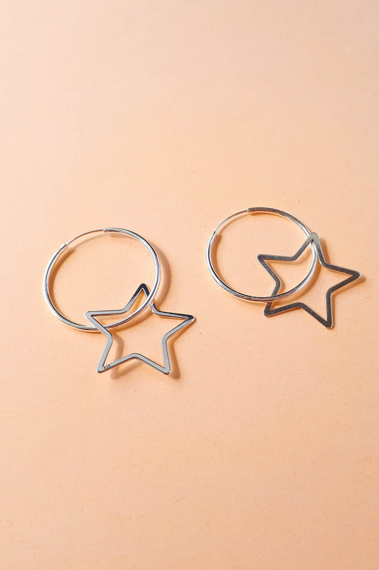 Sterling Silver Hoop Earrings with Star Charm