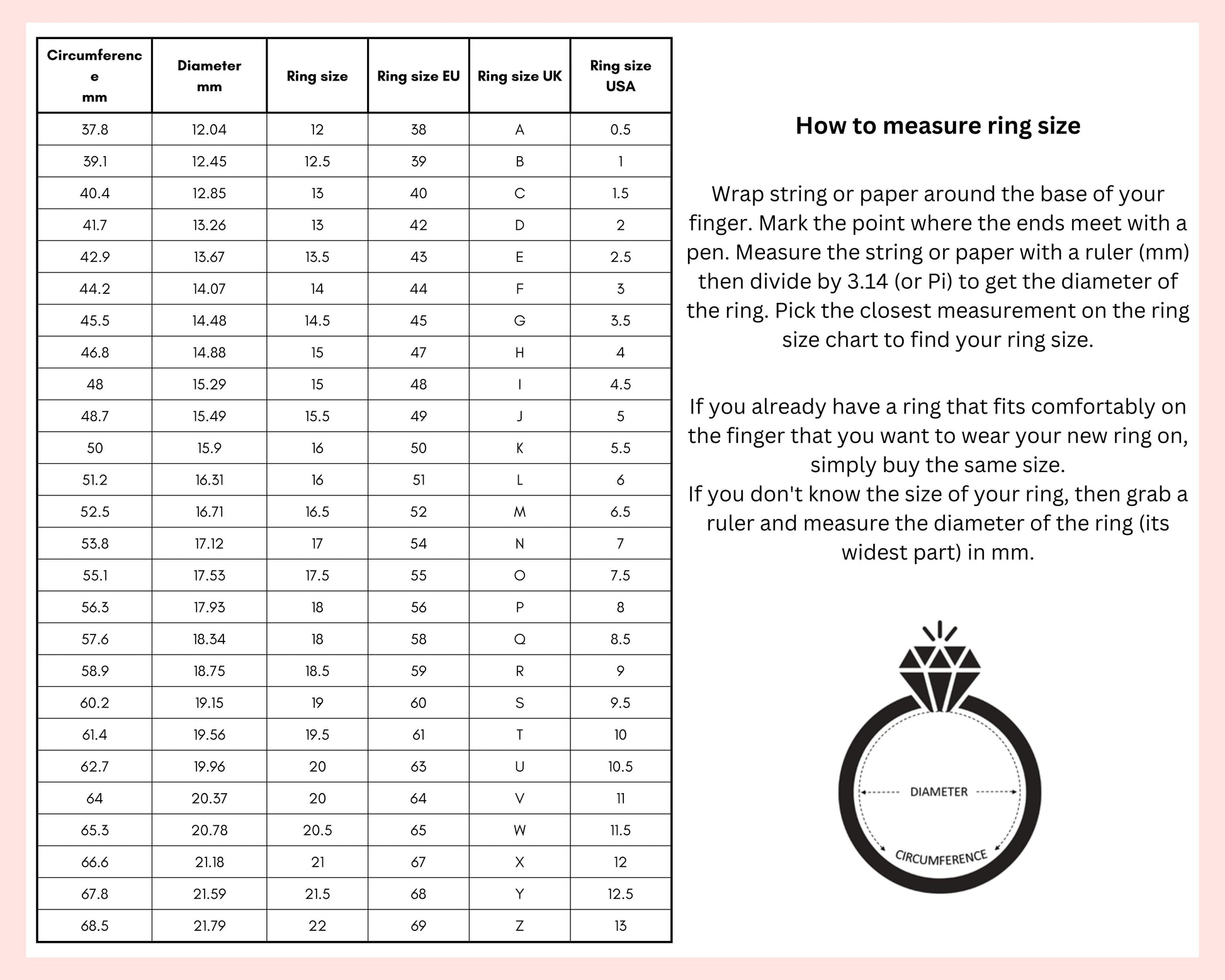 Finding the perfect fit is easy! Before placing your order, don't forget to measure your finger. Our ring is not only comfortable but also chic, making it the ideal accessory.