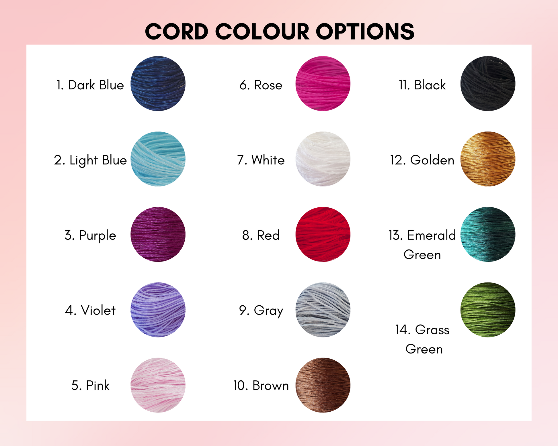If you choose 2 custom colors for the seed beads or custom color for the cord, please write them in the personalization field.