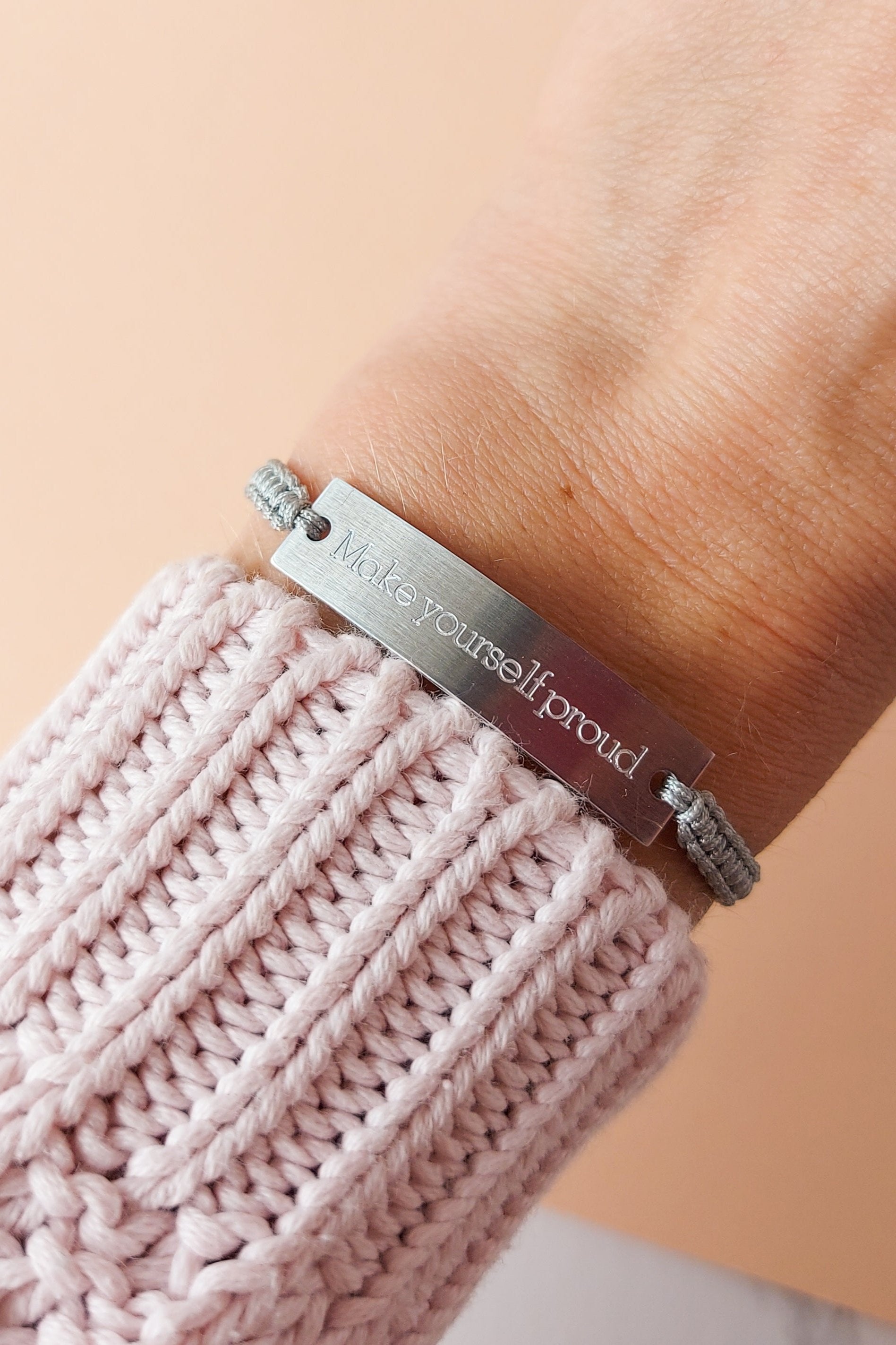 This engraved bar chain bracelet with an aluminum pendant can become anything you want it to be, from a meaningful gift for a loved one to a sleek accessory for your own use. The sharp engraving won't fade for long, making the bracelet a guaranteed favorite in anyone's jewellery box.