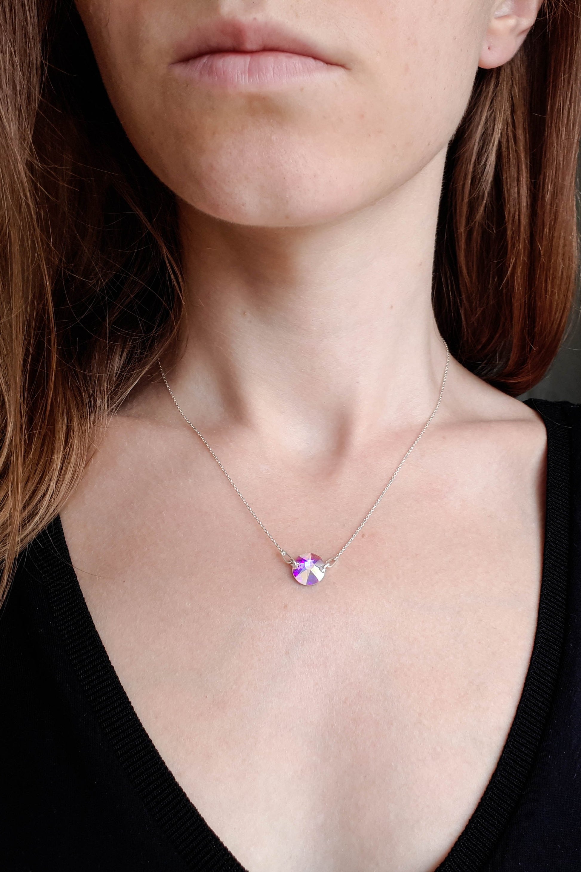 This necklace is made with sterling silver jewellery findings and genuine Swarovski crystal.